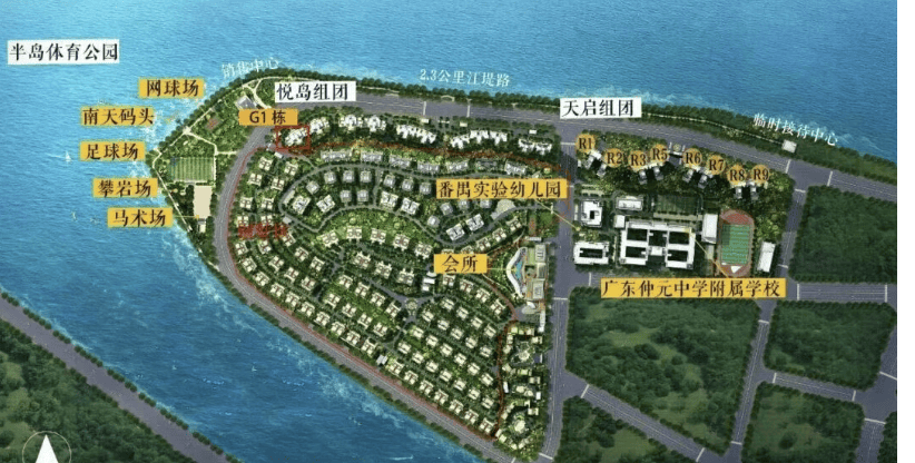 答:配套可谓“私人度假区”:包含由苏炳添代言的天CLUB(双泳池、球馆、健身房、藏书楼等)、广州首个社区私人马术场(取国际小马俱乐部合做)、半岛体育公园(脚球场、网球场等)、约2。3公里江岸线等。以会员制形式运营,保障圈层纯粹取体验质量。
